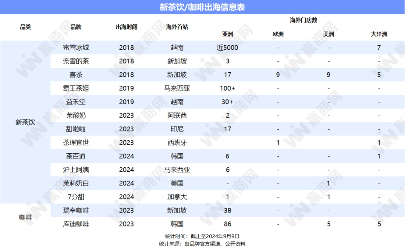 赢商网的数据显示,出海已成为各大新茶饮和咖啡品牌未来发展的重要一环,东南亚地区因地理位置、文化相似性以及巨大的市场潜力,成为品牌出海的首选。同时,品牌们在欧美市场的探索和布局正逐渐加速。